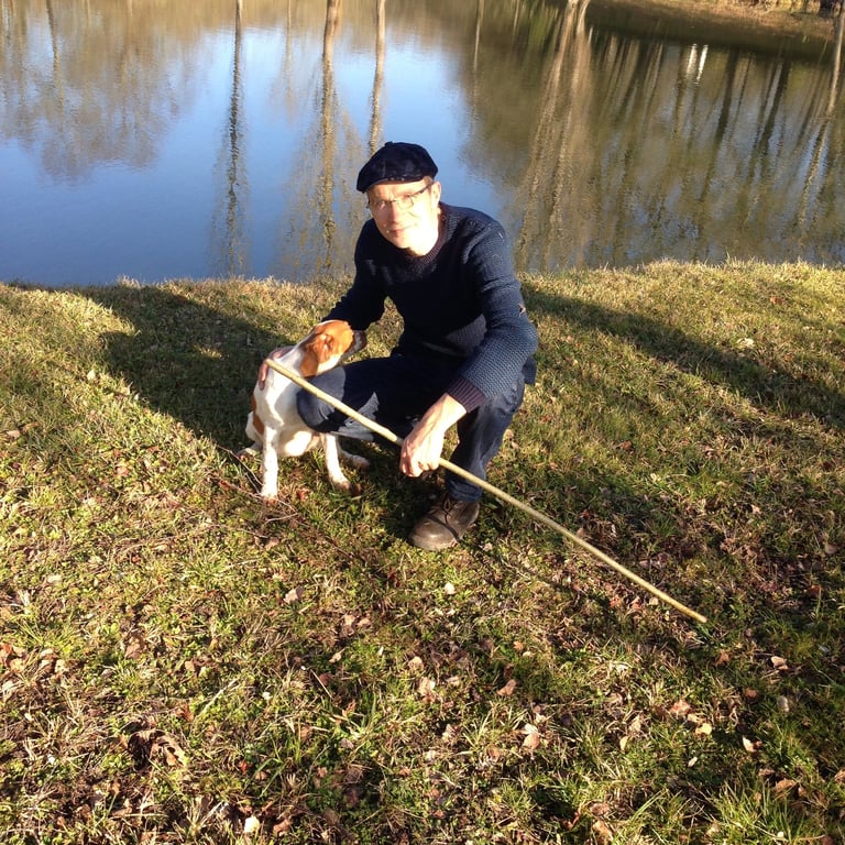 J’ai quitté Strasbourg un vendredi à 13 h pour aller la récupérer chez un paysan bordelais le samedi matin à 7 h. Il ne fallait surtout pas arriver en retard : pour eux, le jour de chasse, c’est sacré. Vers minuit ou une heure du matin, je me suis arrêté devant la ferme pour finir ma nuit. À 7 h pile, la voilà. Autour d’un café, j’ai fait sa connaissance. Elle n’avait pas l’air farouche. À ce moment-là, elle s’appelait Misette... Vaindiou, quel prénom ! Peu de temps après, nous étions sur le chemin du retour.