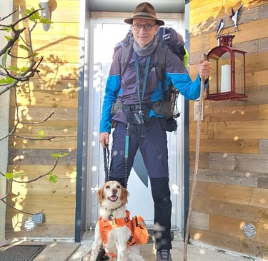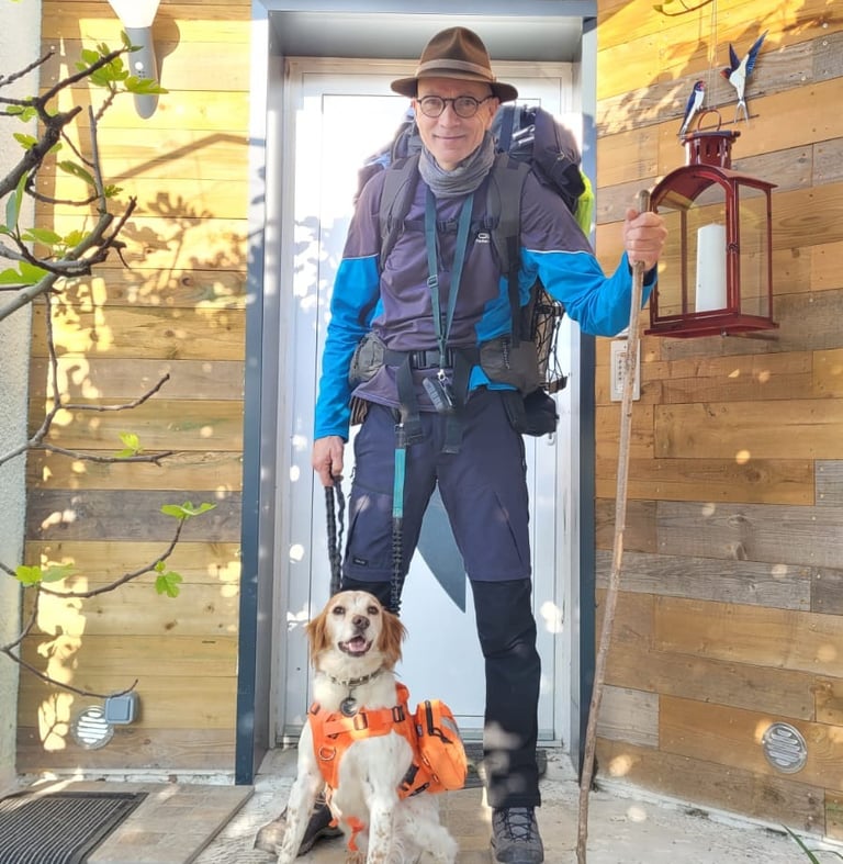 Et bien sûr, ma Biscotte, qui porte aussi ses affaires (1,7 kg) — à chacun sa valise et ses emmerdes.
